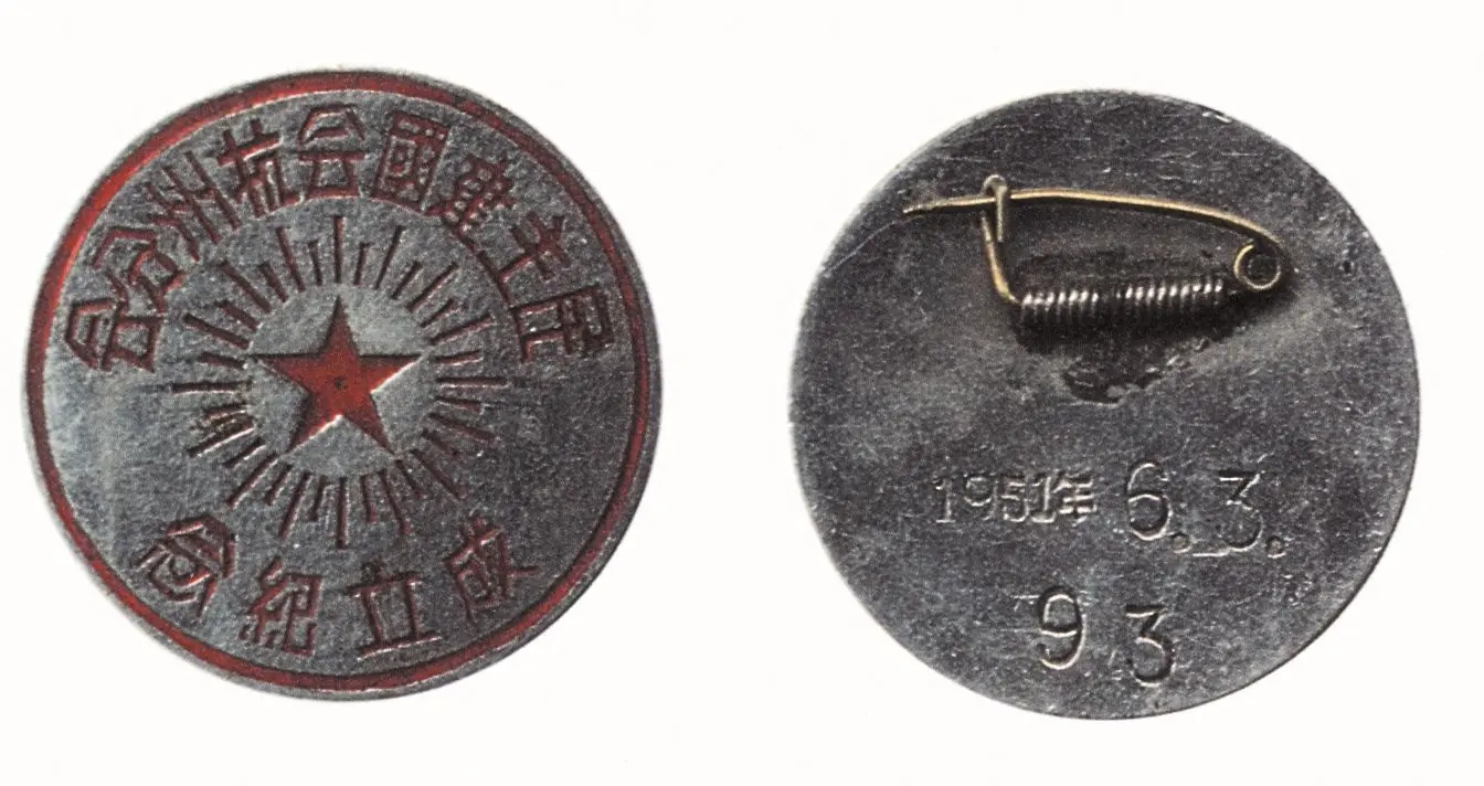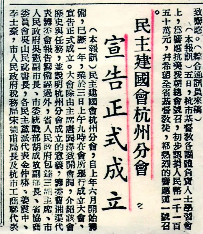 (图2-1.2:民建杭州分会成立时的新闻报道及成立纪念章)