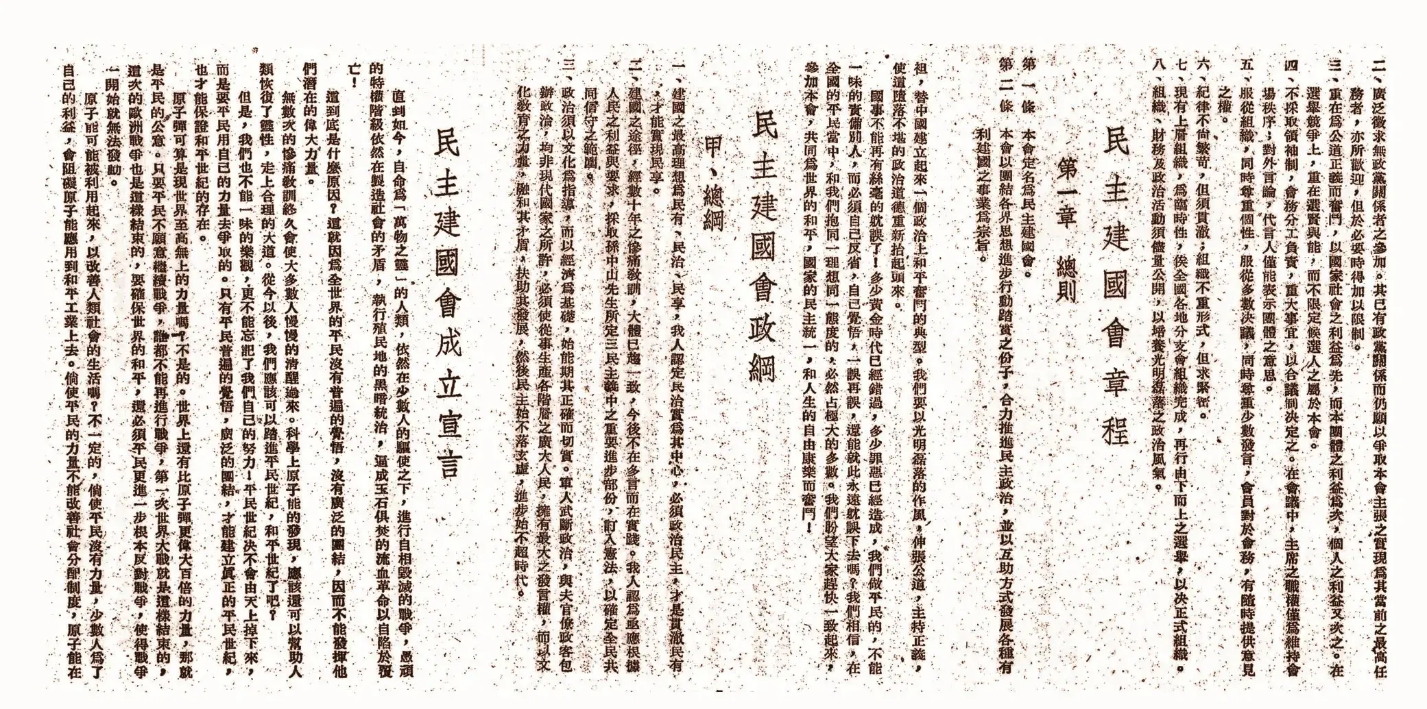 (图1:民建成立大会通过的成立宣言、政纲及章程)