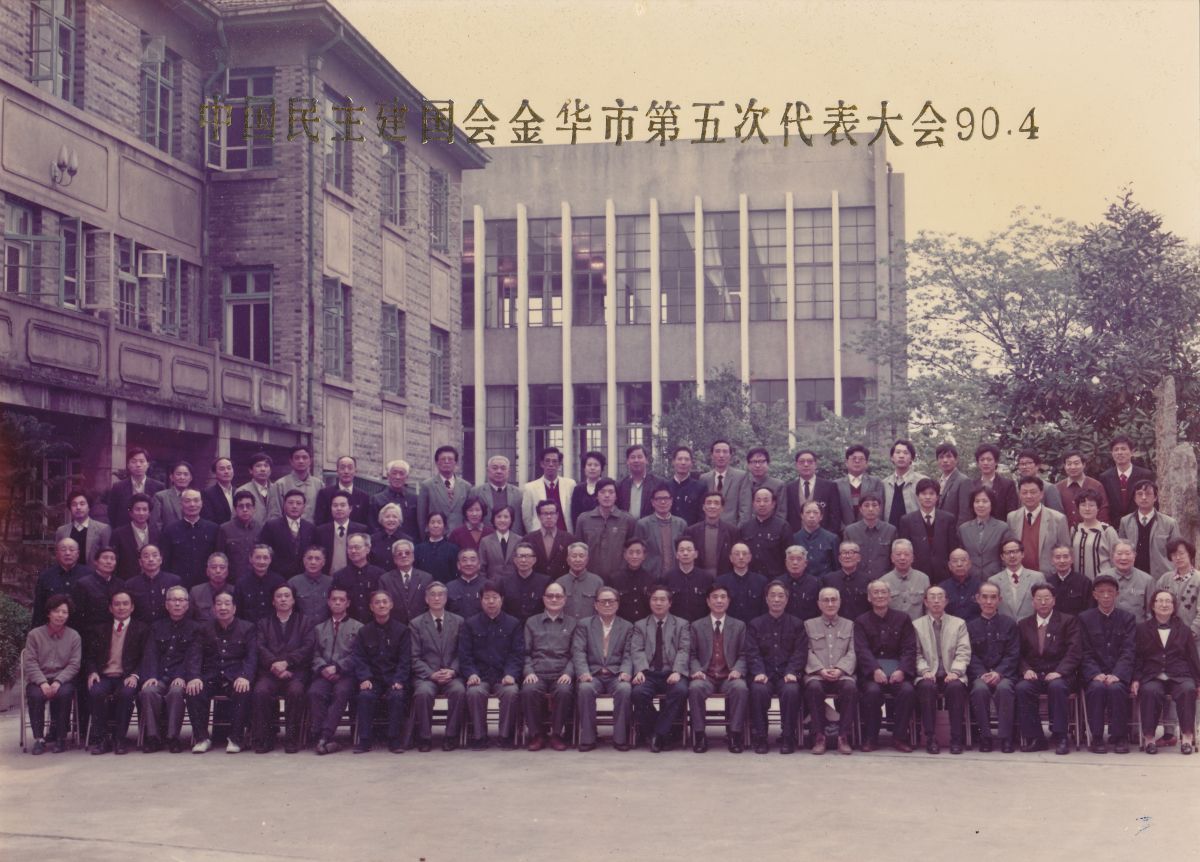 1990年4月16—17日,民建金华市第五次会员代表大会召开,82名代表出席。会议选举15位同志组成第五届委员会,五届一次会议选举盛天民为主委,卢有宽、何廷辉、朱小良为副主委,唐华英、叶志秀为副秘书长。