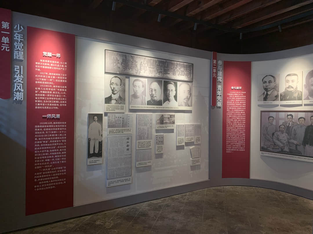 第一单元——少年觉醒,引发风潮。介绍1917年—1919年,施复亮在杭州浙江省立第一师范学校及相关事迹。主要有:与俞秀松等人成立浙江新潮社,主办《浙江新潮》,传播新思想、新文化。在《浙江新潮》刊发《非孝》一文,引发“一师学潮”等,及施复亮离开杭州到北京参加共读互助团等活动。