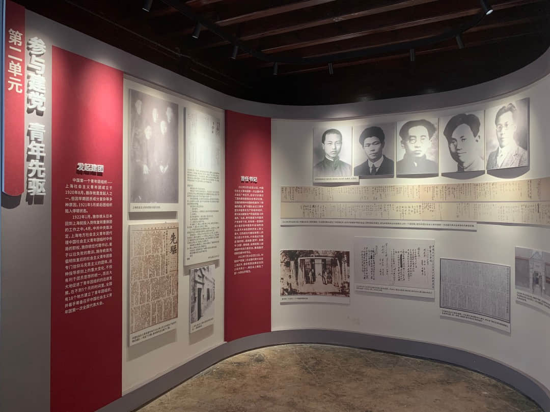 第二单元——参与建党,青年先驱。介绍1920年-1927年,施复亮参与建党、留学日本、担任团中央书记相关事迹。主要有:一、结识陈独秀,参加马克思主义研究会,讨论成立上海共产党。二、留学日本,在留学生中发展党组织,宣传介绍马克思主义。三、施复亮回到上海,与俞秀松等人重振团的工作,筹备中国社会主义青年团第一次全国大会,当选团中央书记,主编团刊《先驱》。