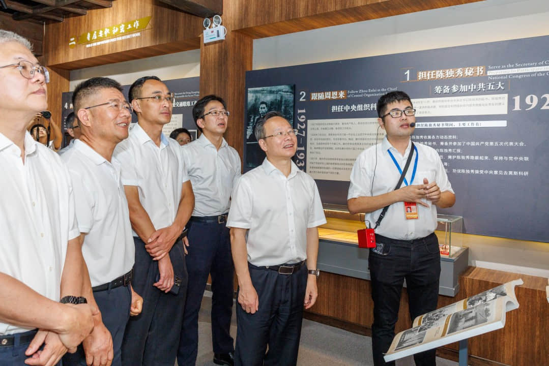(图1:2024年7月,陈小平主委带队调研黄玠然事迹展陈馆)