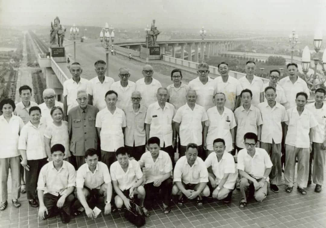 1978年,民建中央、全国工商联领导胡子昂(二排左七)、孙起孟(二排左五)、孙晓村(二排左四)、胡子婴(二排左三)、吴羹梅(二排左六)来江苏视察,推动江苏”两会“恢复活动。