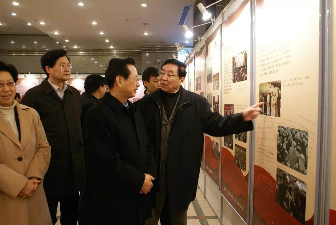 2007年12月29日,民建中央主席陈昌智(右二)在南京参观民建江苏省委举办的”代代薪火传后人“图片巡展。