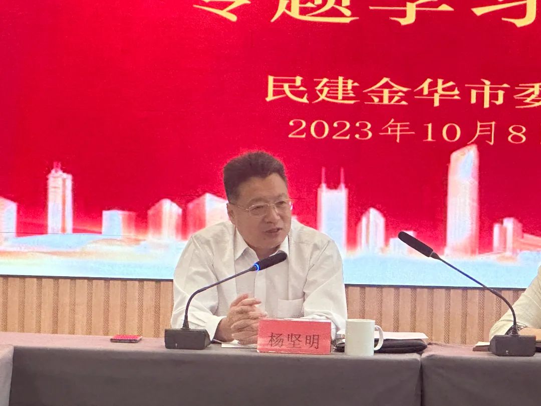 杨坚明强调,学习宣传贯彻习近平总书记在浙江考察时的重要讲话精神和在金华考察调研时的重要指示精神,是当前和今后一个时期金华民建的头等大事和首要政治任务,要在全市民建会员之中迅速兴起学习宣传贯彻热潮,始终牢记总书记对金华“根据实情、发挥优势、扬长补短、再创辉煌”的殷殷嘱托,以功成不必在我,功成必定有我的觉悟与信念做好各项工作。
