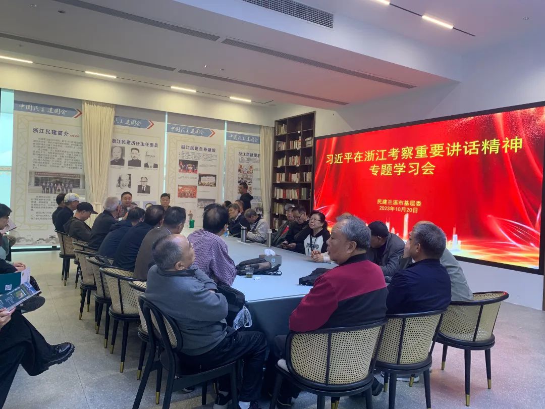 在联谊交流座谈会上,民建兰溪市基层委副主委徐月峰传达学习习近平总书记在浙江考察时的重要讲话精神和在金华考察调研时的重要指示精神,并对基层委抓好学习贯彻做出部署。