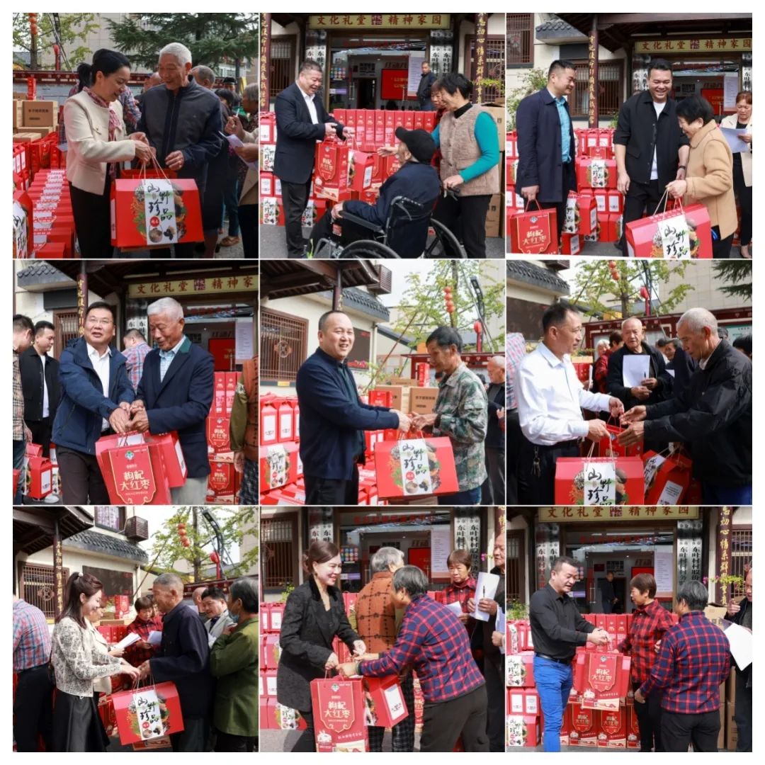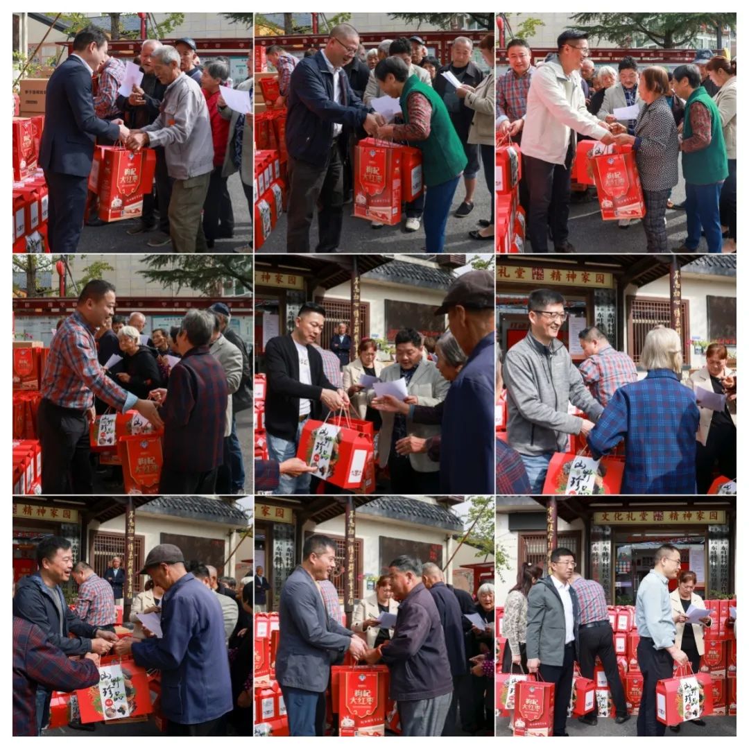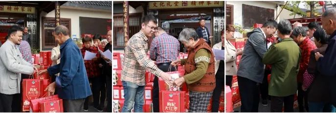 在村委会大楼门口,王红霞带领金东民建和民建企联会的会员们为全村70岁以上共250名老人发放了牛奶、山珍等慰问品,送上了节日的问候和祝福。“感谢金华民建一直都记挂着我们,每年重阳节他们都会来村里举办活动看望我们,我们真的太幸福了!”老人们高兴地表示。