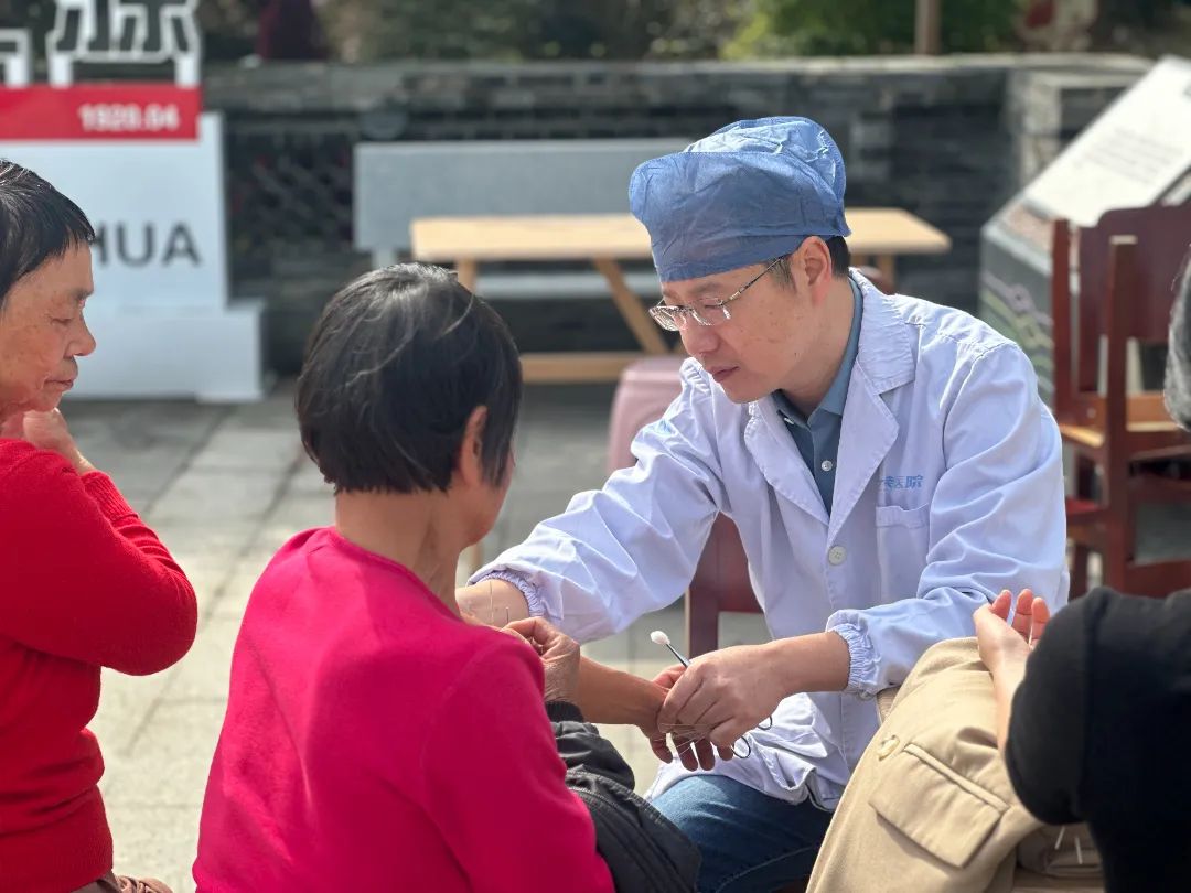 在光南大舞台前,金华民建为东叶村的老人及村民们开展义诊活动。义诊活动现场设置了耳鼻喉科、肝胆胰科、针灸科、疼痛科、急诊科、检验科、口腔科等,来自市区各大医院的市直七支部会员们,为前来问诊的老人提供血压测量、血糖检测等服务,详细询问老人们的症状、既往病史,用药情况等,深入浅出地解答他们的健康咨询,给予相应的疾病预防和用药指导。