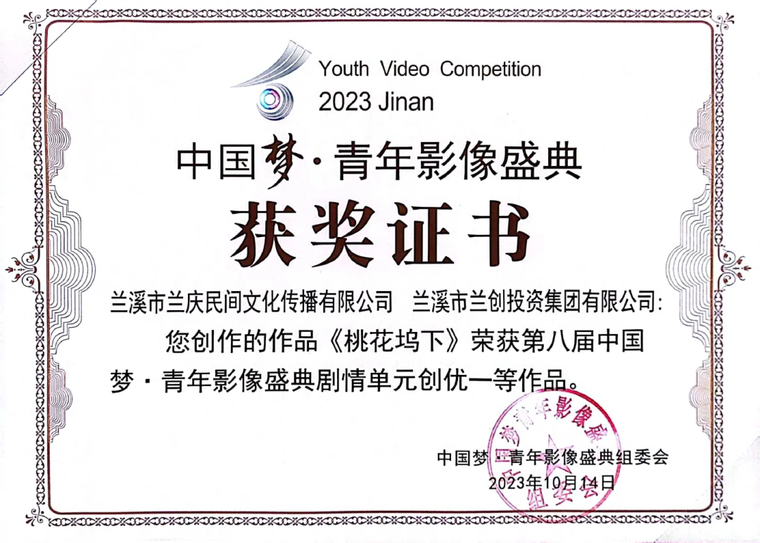 近日,由兰溪民建会员朱兰庆参与策划,兰溪市兰庆民间文化传播有限公司、兰创投资集团有限公司共同拍摄的清廉微电影《桃花坞下》荣获第八届中国梦·青年影像盛典创优一等作品。