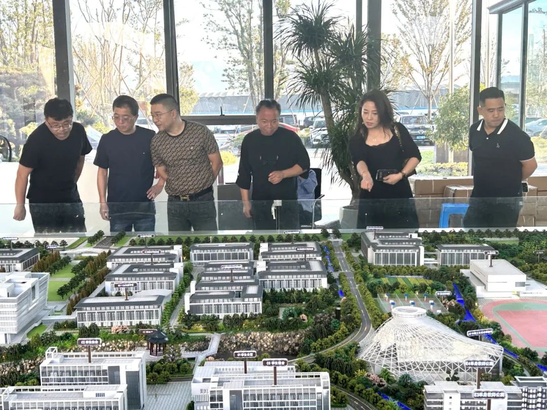 参观后会员们赶往广厦大学调研二期新校区雕塑学堂建设情况,在新校区项目部,广厦大学负责驻地的的张老师专门带领大家参观了二期整体建设的沙盘模型,对目前整个新校区建设做了讲解和介绍,同时介绍了未来广厦大学将把该校区建成工艺美术大类“中高本硕”一体化技术技能人才培养基地,中小学研学、科普与劳动实践基地和木雕红木家具产业全产业链的职业人才培训基地。