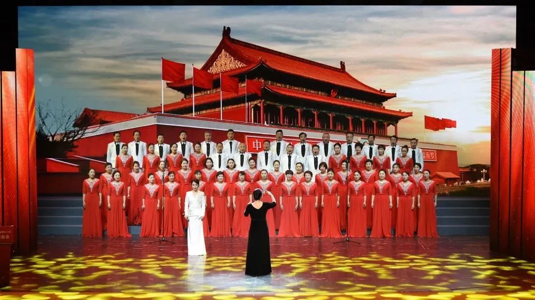 本次报告会,民建金华市委会选送了《旗帜颂》大合唱表演。该节目由民建金华金东三支部会员、金东区含香小学校长王莹指挥,民建金职院支部主委、金职院师范学院教师吴竟然领唱,优美的旋律、鼓舞人心的歌词引起了全场共鸣。
