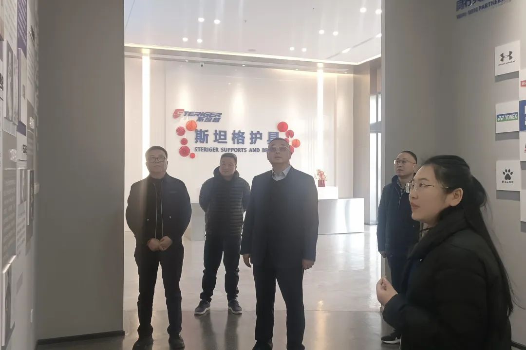 在会员企业——浙江斯坦格运动护具有限公司,总经理洪庄明带领大家参观了公司的数字化展厅和生产线。座谈会上,洪庄明向大家详细介绍了企业的基本情况。他表示,目前企业拥有员工300余人,2023年度销售额超过1.5亿元,为国家贡献税收700余万。作为2023年度浙江省行业小巨人企业的佼佼者,2024年度公司计划销售额超2.1亿元,税收目标超1000万。吴立军肯定斯坦格企业的经营成果,并鼓励要再接再厉,做强做大,为社会承担更多责任,为民建组织作出更大贡献。