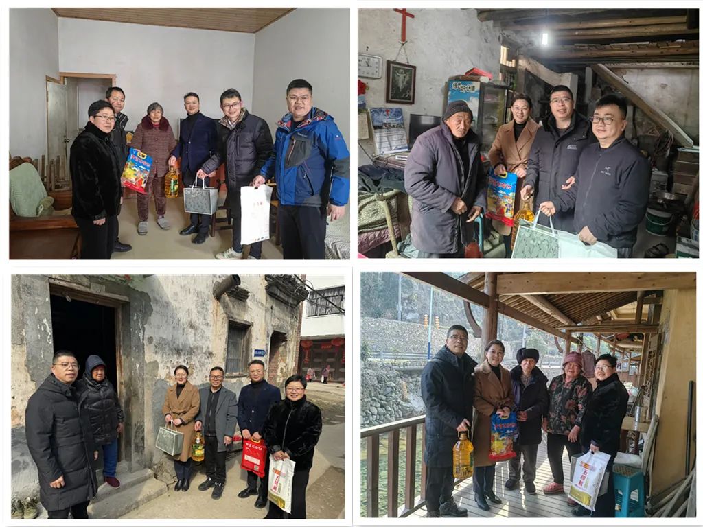 拱墅区第四支部主委张慧莉与民建金华市直属第十支部主委傅俪见带领会员一起详细了解该村发展情况,为80岁以上的20多位老人送上共富大米、面粉、玉米油、炊具等慰问品和新春祝福,受到了山区群众的欢迎。
