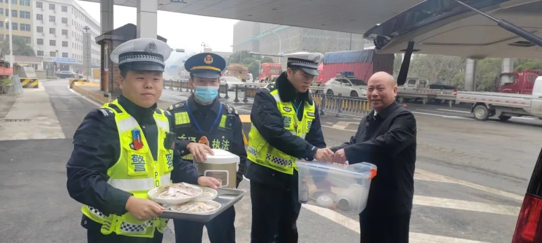 从那以后,“昌哥”努力向母亲、妻子、朋友学习做菜。一次春运就让他学会了20多道家常菜。之后每年的春运,“昌哥”都会雷打不动地为交警们送饭,无论刮风下雨,还是大雪纷飞,甚至疫情期间,“昌哥”也坚持为交警们送饭。就这样,为了当年的一句承诺,金永昌已经默默坚持连续二十个年头,为大陈春运工作服务站的交警免费送饭菜。