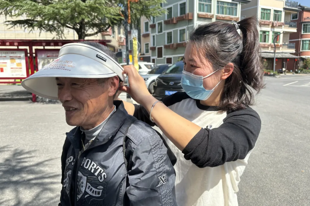 路上,老人们齐声唱起《在希望的田野上》,伴着路旁桃花争艳,老人们在欢声笑语中与春光同行。“这条上山的路,我和老伴走了很多年了,以前去种田都要走这条路,现在翻新过,路更平坦,两旁也栽了绿树,夏天乘着树荫,吹着微风,可舒服了!”漫步于绿树成荫的民建路,东叶村的施爷爷笑着说。