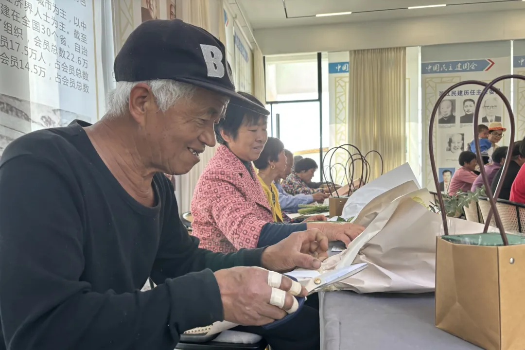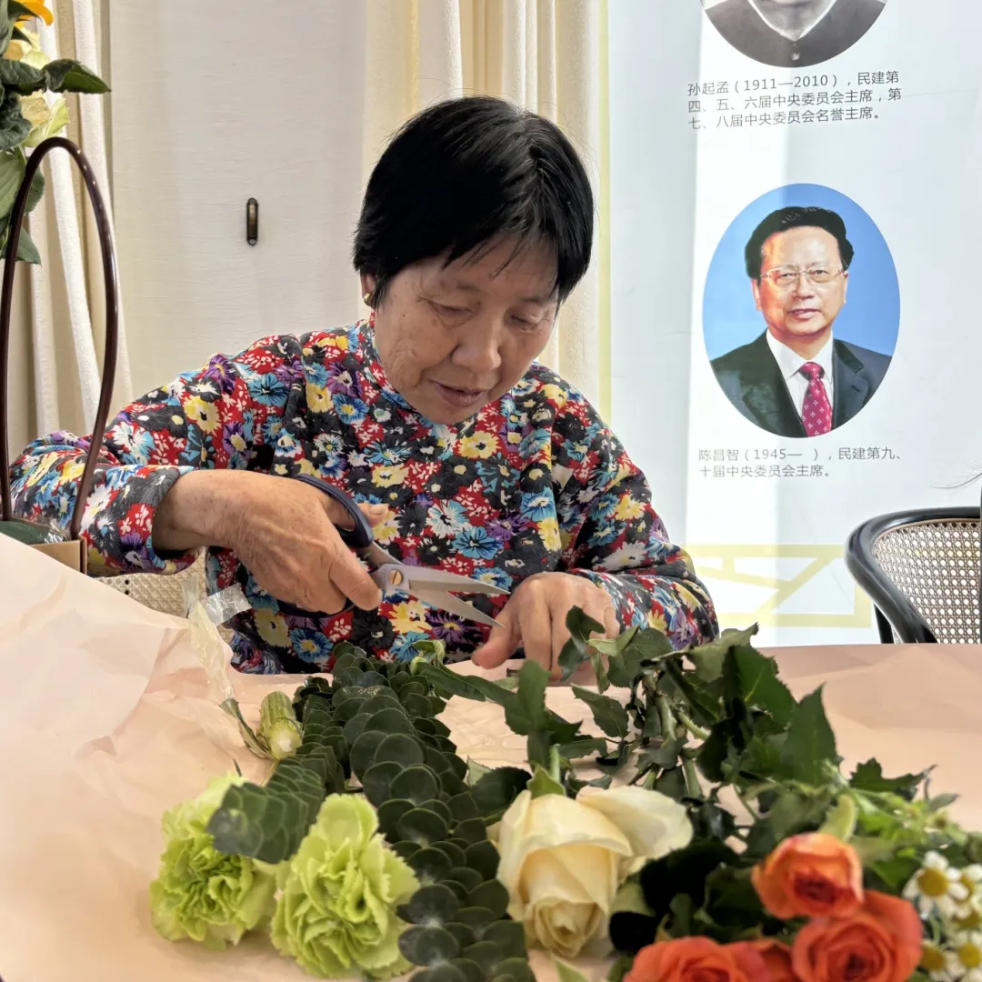 除了踏青,益“羊”公益项目还在浙江民建会员之家准备了插花活动。在社工耐心细致的演示教学下,老人们踊跃尝试、发挥创意,修剪花枝,高低错落摆放花束,分享自己插花的心得。