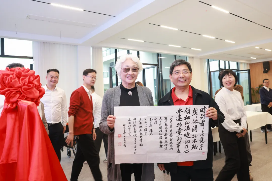 “这是我书写的施光南先生13岁时登上天安门城楼与毛主席握手后写下的小诗《永远跟党向前走》。”余秋荣向洪如丁介绍其创作的作品,并把它赠送给洪如丁。而后,两人还共同回忆了过往因施光南音乐广场、施光南音乐厅、施光南铜像建设而结识的往事。
