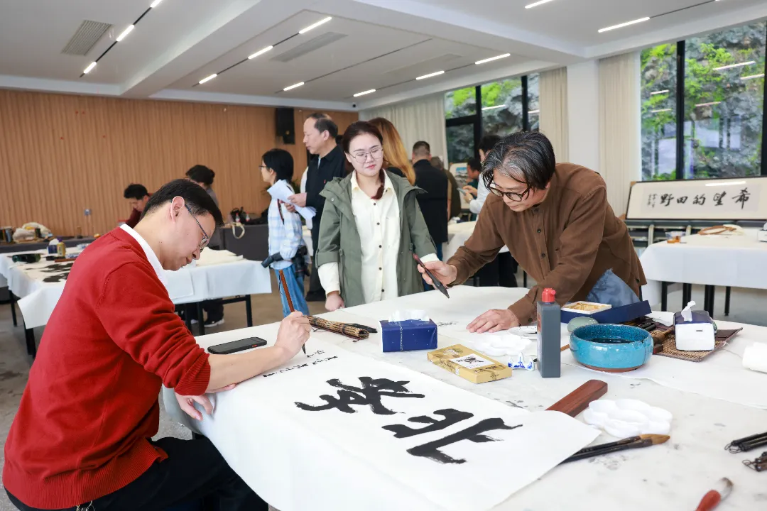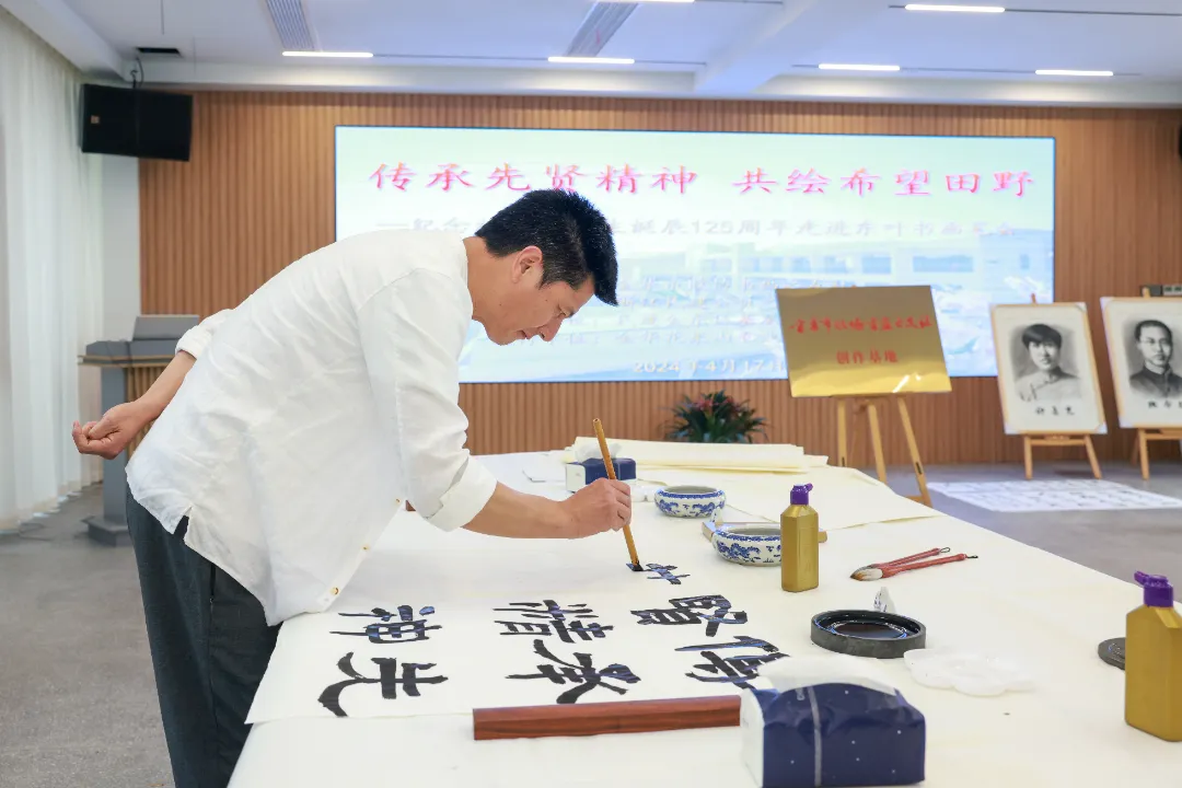 活动现场,书画家们从先贤的精神中汲取滋养、激发灵感,用手中的笔墨,将深切的艺术感受化作美丽线条。在当天创作的作品中,既有书法作品,也有山水、花鸟、人物画作品。其形式多样、内涵丰富,或大气磅礴如激流奔涌,或行云流水如水到渠成,以翰墨之香展示了大家在艺术追求上的趣旨和指向,融入了众多民建元素统战元素,更共同赞美伟大的时代和乡村振兴的新画卷。