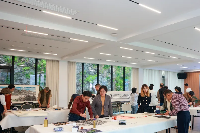 浙江民建会员之家此次被市政协书画之友社确定为创作基地。笔会活动开始前,洪如丁女士和吴战堡先生共同为基地揭牌。