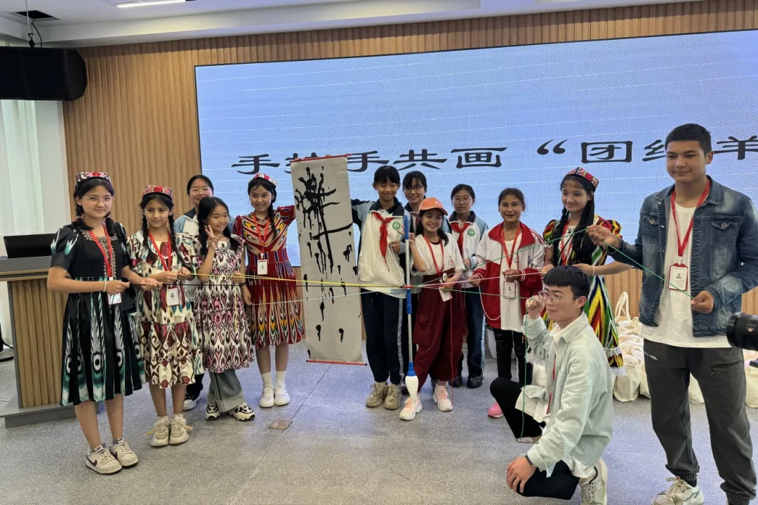 在“手拉手共画‘团结羊’”这一环节,两地的孩子们齐心协力,用“神笔”共同书写了“团结羊”这一寓意深刻的主题词。作品不仅展现了孩子们的创造力和想象力,也寓意着两地小朋友之间紧密的友谊和团结的精神。