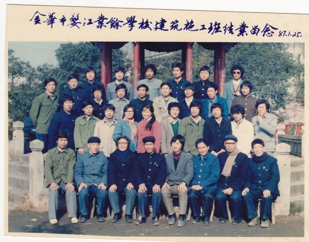 金华市婺江业余学校建筑施工班结业留影,雷永金(左一)