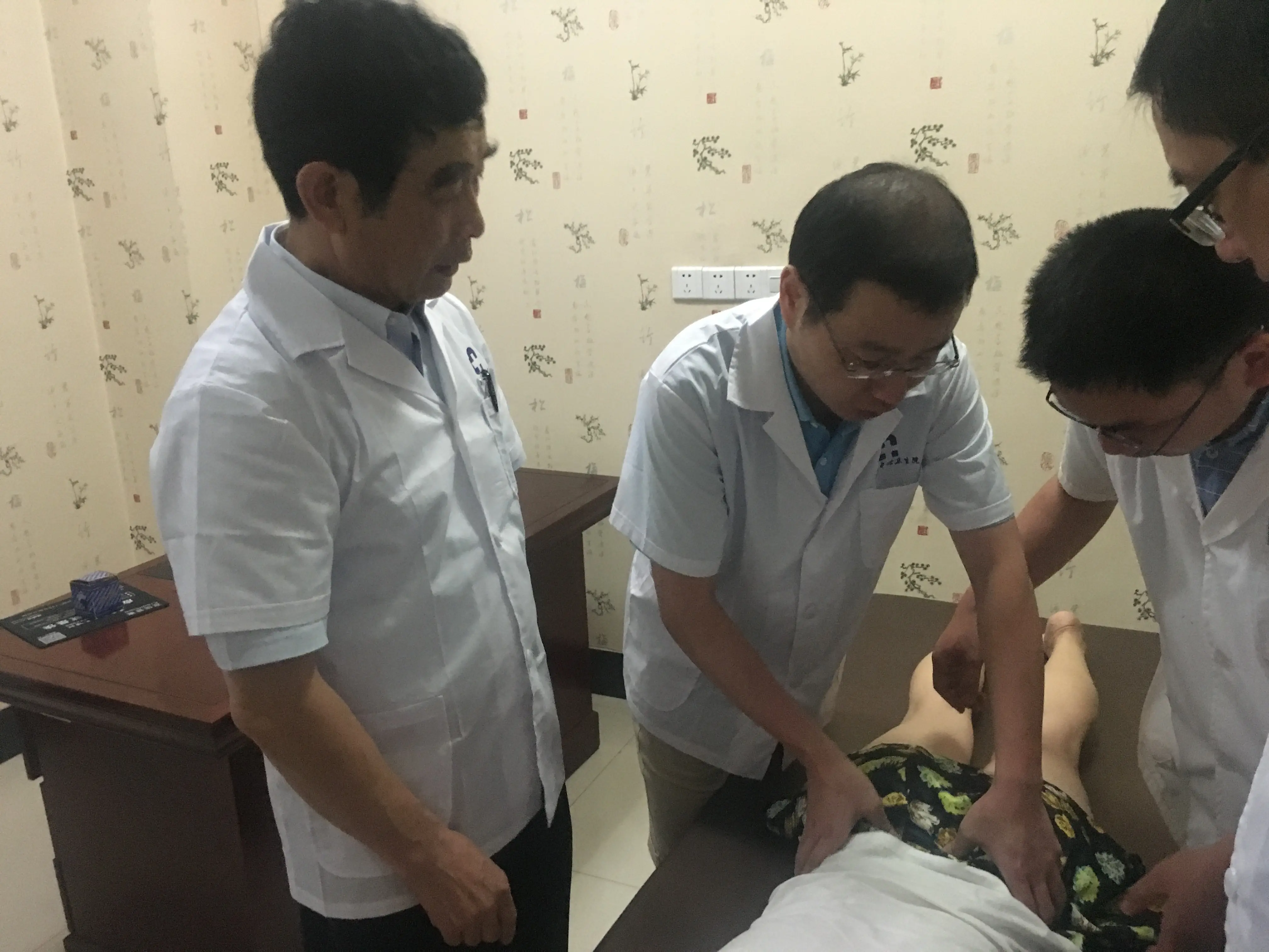 走进他的办公室,氤氲着熏艾的中药味,多间诊室都被一张张整齐排列的治疗床占据,因为病患多治疗床不够用,他自己的主任办公室也充当了诊室,治疗桌上放满各种针具、火罐和艾条。