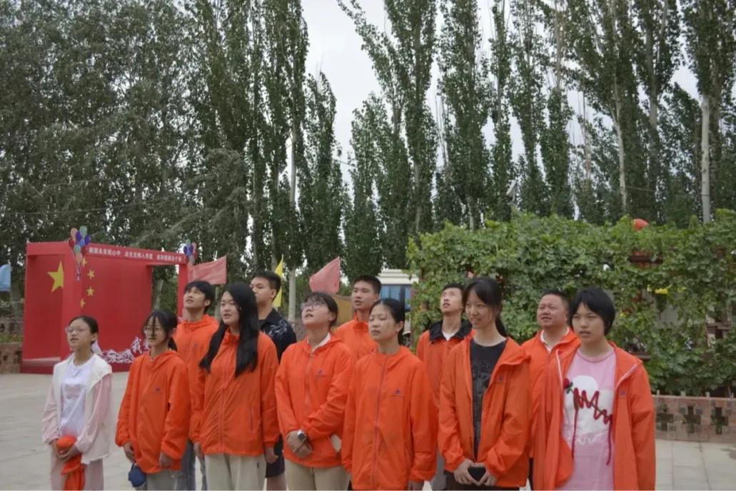 在温宿县国旗教育展馆,研学团静静聆听“国旗老人”胡达拜地·依明的故事。他怀着对祖国的无限忠诚和固守家园的坚定信念,28年如一日,每天在位于中吉边境的自家小院中升起五星红旗,用最简单、质朴、赤诚的方式诠释拳拳爱国情,身体力行地向大家传递爱党爱国、守边固边、民族团结的理念。随着红旗的缓缓升起,队员们抬头望向国旗唱起国歌,镜头定格下这庄严的一幕。