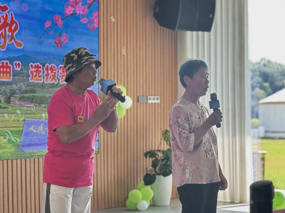 在初赛的舞台上,流行金曲与戏曲轮番唱响,爱国旋律与本土风情共鸣。参赛选手中,来自东叶村的施姣倩是其中年龄最大的,今年已经71岁。她不仅独唱了一首《没有共产党就没有新中国》,还与她的好友施巧秀共同演唱了由施光南先生作曲的《在希望的田野上》。9岁的何睦小朋友带来了一首动画片西游记的片尾曲《白龙马》,歌声悦耳欢快,唱出了童真和童趣。当来自东前施村64岁的施敦高唱响《猴哥》时,现场观众掌声雷动、经久不息。11岁的施琰演唱了本土原创歌曲《相约东叶村》,30岁的王小雨带来了周杰伦的《青花瓷》,62岁的徐作振演绎了《大八仙》……每一首歌曲都饱含深情,展现了源东乡村民们的唱功与音乐魅力,更传递了积极向上的生活态度,现场不时爆发出阵阵掌声与欢呼声。