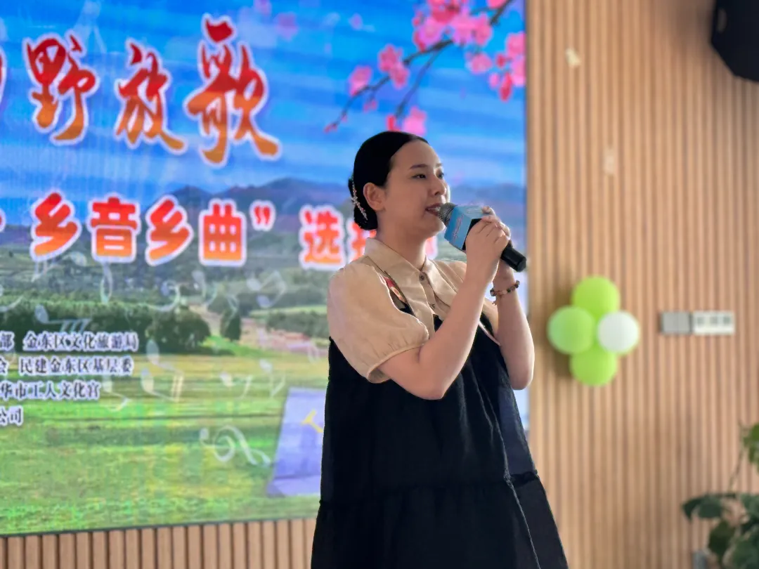 当天,金华市政协副主席、民建金华市委会主委杨坚明,民建金华市委会专职副主委王红霞,民建金华市委会副主委、金华明家装饰工程有限公司董事长卢森军,民建市委会秘书长于仁光,金东区文化和旅游局党组成员、副局长马丽萍,金东区源东乡人大主席金勤伟,民建金东区基层委主委、金东区教育体育局副局长周诚伟,民建金东区基层委副主委、浙江富盛商业管理有限公司总经理杨建新等来到初赛现场,和源东乡的乡亲们一起唱响“乡音乡曲”。