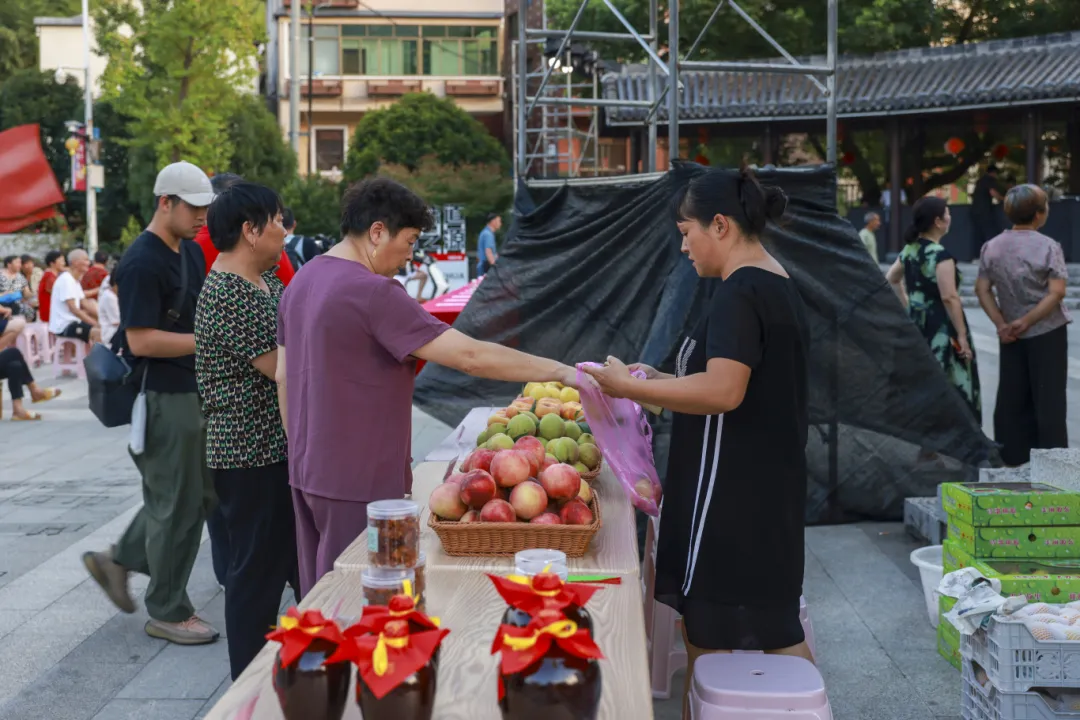 此外,为了助力共同富裕,活动现场还特别设置了助农摊位,展示了源东乡蜜桃等特色农产品。这些新鲜可口的农产品不仅吸引了众多村民的目光,也让赶来观看演出的观众纷纷驻足购买。这一举措不仅为当地农民拓宽了销售渠道,增加了收入,也进一步推动了乡村经济的发展,为实现共同富裕的目标贡献了一份力量。