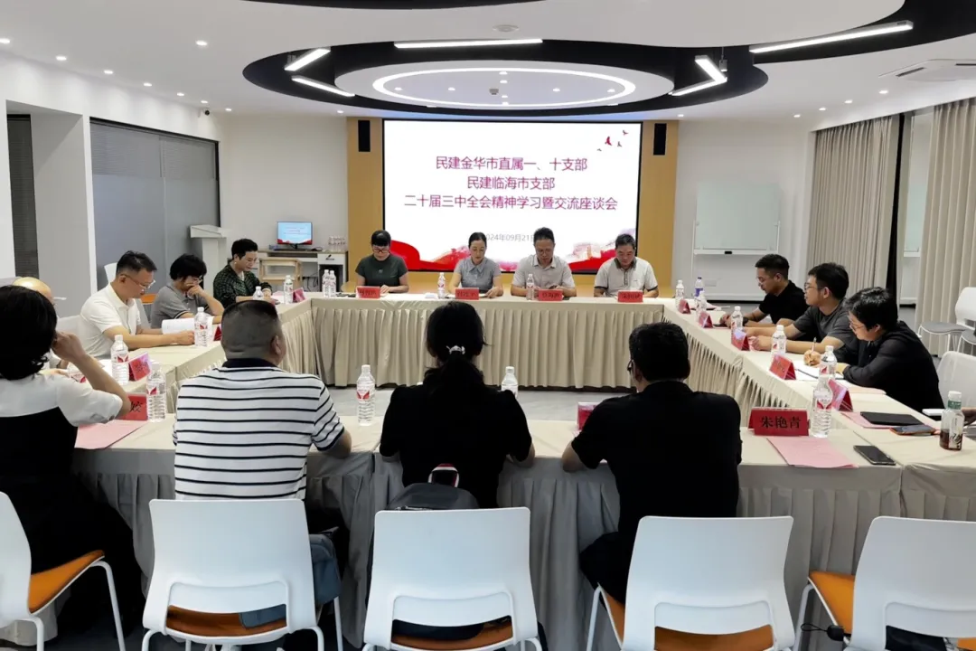 在交流座谈会上,民建金华市直属一、十支部与民建临海市支部共同学习了中共二十届三中全会精神,并开展了参政议政工作交流,三方还围绕资源共享、优势互补、友好共建等主题进行互动。