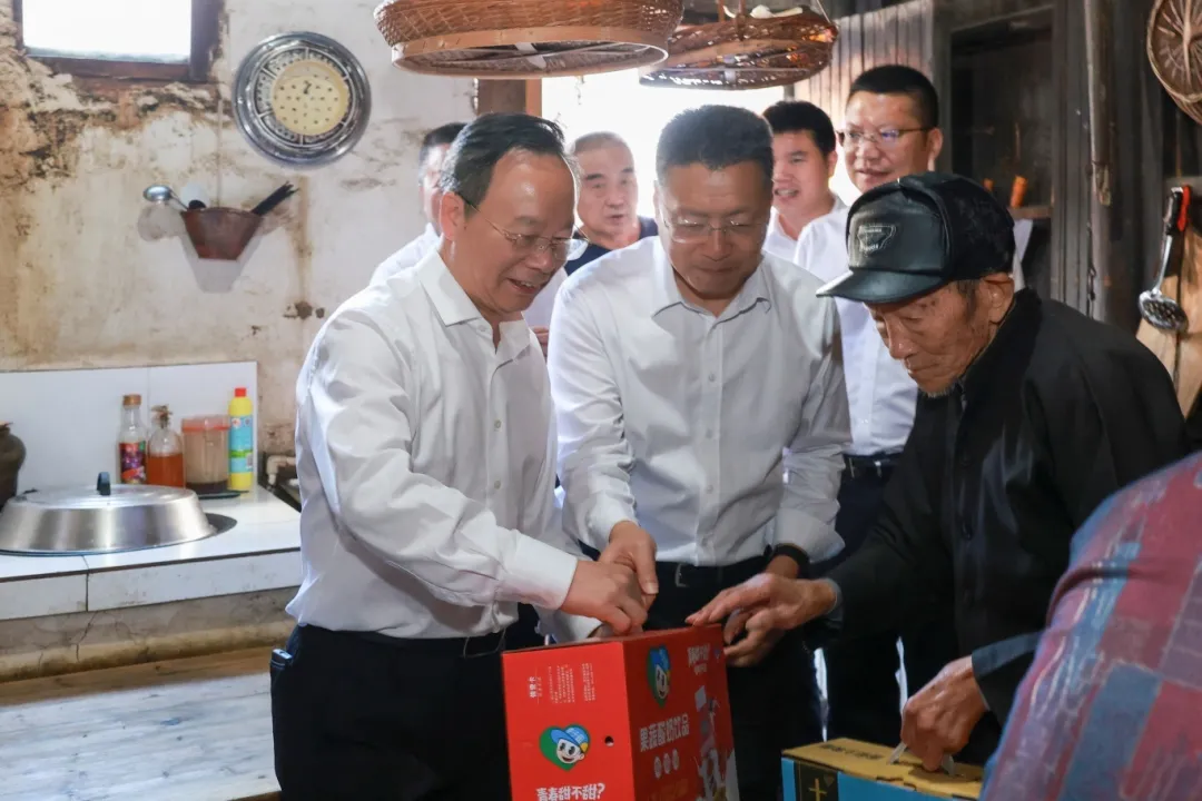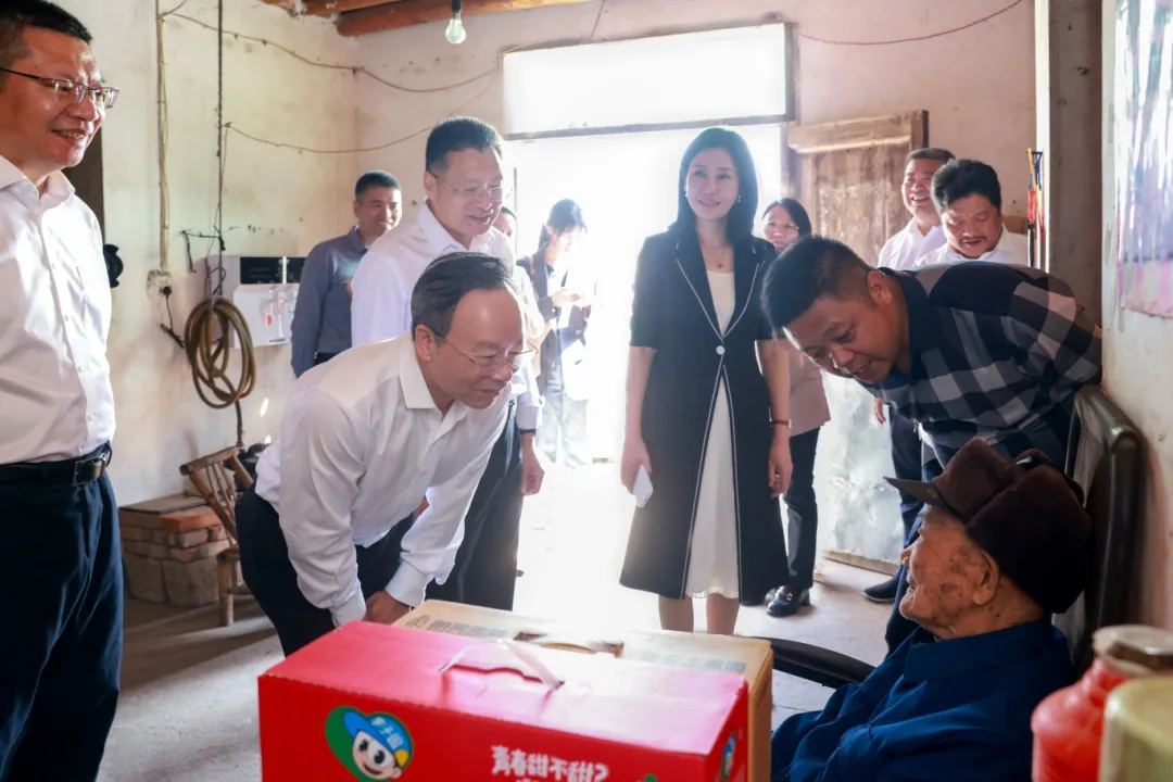 陈小平还走访慰问了百岁老人施春喜和村民施存旺夫妇。他关切询问老人的生活与健康,为他们送上节日的祝福及民建的关怀与问候。