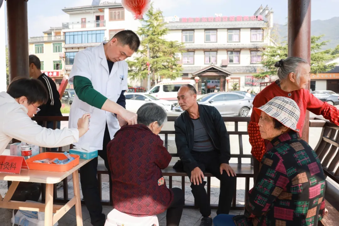 “医生,我前段时间久坐后起身,忽然觉得腰部剧烈疼痛,痛得想在地上打滚,小便也解不出来,这两天好点了,不知道是怎么回事?”面对村民的咨询,医生做了一些问诊检查后,初步怀疑是体内结石引起,建议他去医院做CT。75岁的曹奶奶于3年前患上面瘫,前两天落枕后颈部一直不适。医生在她的风池穴、风府穴等穴位施针,帮她活血化瘀。不出村口就能享受这样的医疗服务,质朴的村民用声声“谢谢”表达他们的心意。