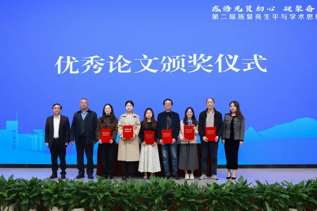 座谈会上,还举行了全国征集相关研究文章优秀论文颁奖仪式。杨坚明、谭先将和浙师大施复亮与近现代中国研究所所长张啸尘向浙江民建会员之家出资者卢森军、施复亮亲属代表曹阳、民建中央理论研究委员会委员赵宾赠送《施复亮文集》。施复亮研究专家、浙师大施复亮与近现代中国研究所特聘研究员何民胜以及曹阳分别作交流发言。
