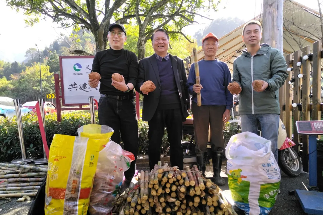 参观期间,听闻当地有农户种植的番薯和糖梗滞销,三位支部主委主动通过村委联系上这位农户,现场收购了滞销的农产品。村委领导非常感谢义乌民建会员们给予农户的帮助,并激动地说到:“民建的共富帮扶活动真是说到做到,不是走形式,摆样子。上次义乌民建基层委主委带队来村里考察,给我们指路子,现在你们又实地来支持村里农产品销售,太感谢了。”