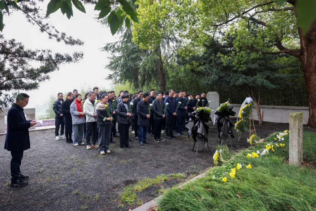 春风拂柳寄哀思,细雨绵绵忆先贤。在清明节来临之际,大家怀着崇敬的心情来到施复亮陵园,开展祭扫活动。全体人员神情庄重,向施复亮敬献花篮,集体三鞠躬并默哀一分钟,随后依次献上一束菊花,表达对施复亮先生的深切缅怀。