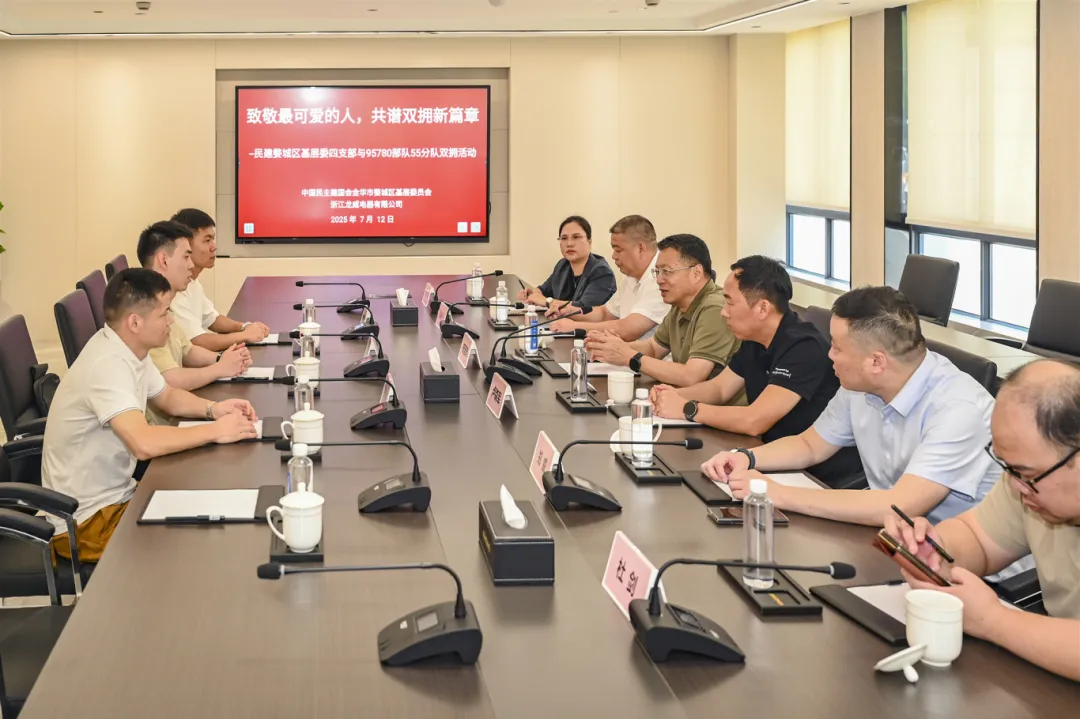 在四支部会员、浙江龙威电器有限公司总经理张小芳的陪同下,部队官兵代表参观了企业展厅、生产车间及研发中心,详细了解企业发展历程、技术创新成果及社会责任实践。