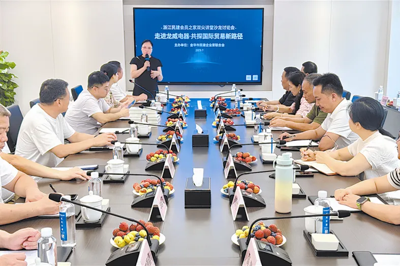 7月13日,由浙江民建会员之家精心打造的“双尖讲堂”品牌活动,在金华市婺城区浙江龙威电器有限公司成功举办了主题为“走进龙威电器·共探国际贸易新路径”的沙龙讨论会。此次活动旨在为会员企业家搭建交流互鉴、合作共赢的平台,共同应对国际市场挑战,开拓发展新思路。