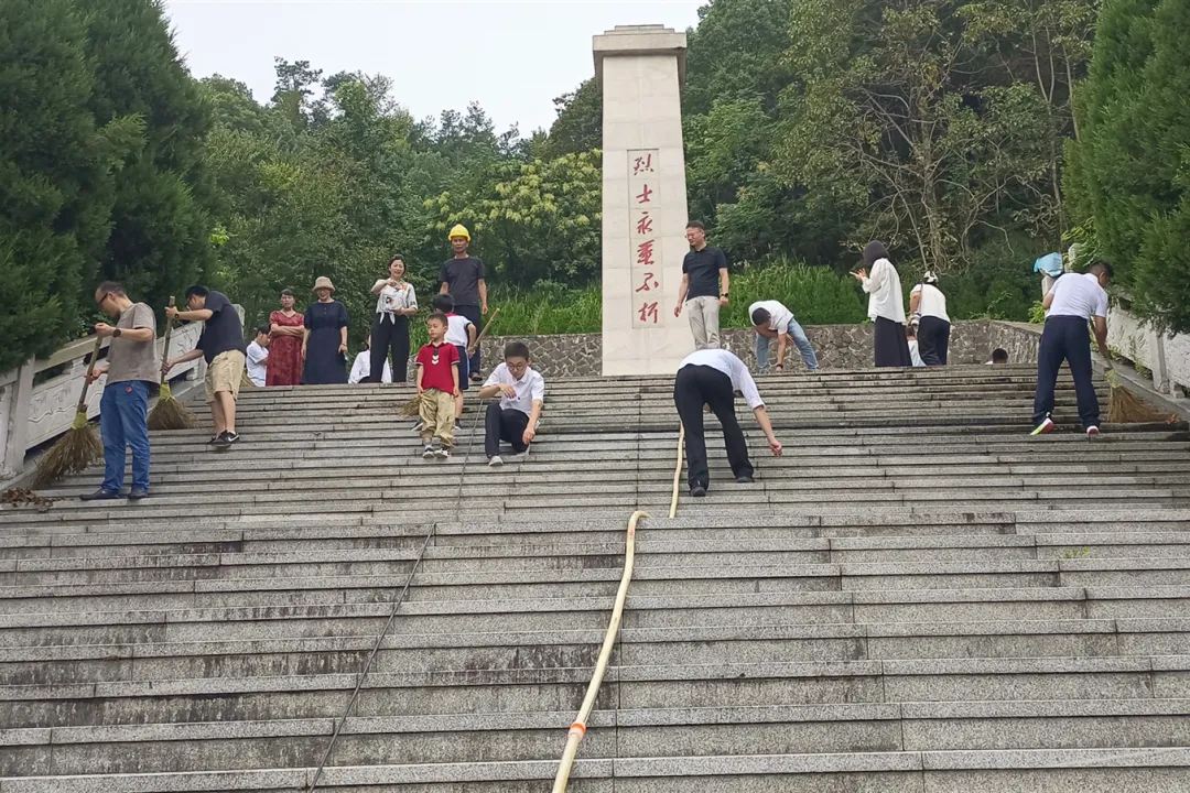 活动伊始,在会员企业家杨辉的发动和赞助下,民建市直浦江支部开展了一年一度的纪念公园石牌和石料清洗活动,大家手持工具对革命烈士纪念碑及周边环境进行细致清扫,用实际行动表达对革命先烈的崇敬与缅怀。随后,一个个红色故事在纪念碑前被深情讲述。孩子们深切感受到抗战岁月的艰苦卓绝和先烈们不畏牺牲、英勇斗争的崇高精神,在幼小的心灵中播下了爱国爱乡、珍惜和平的种子。