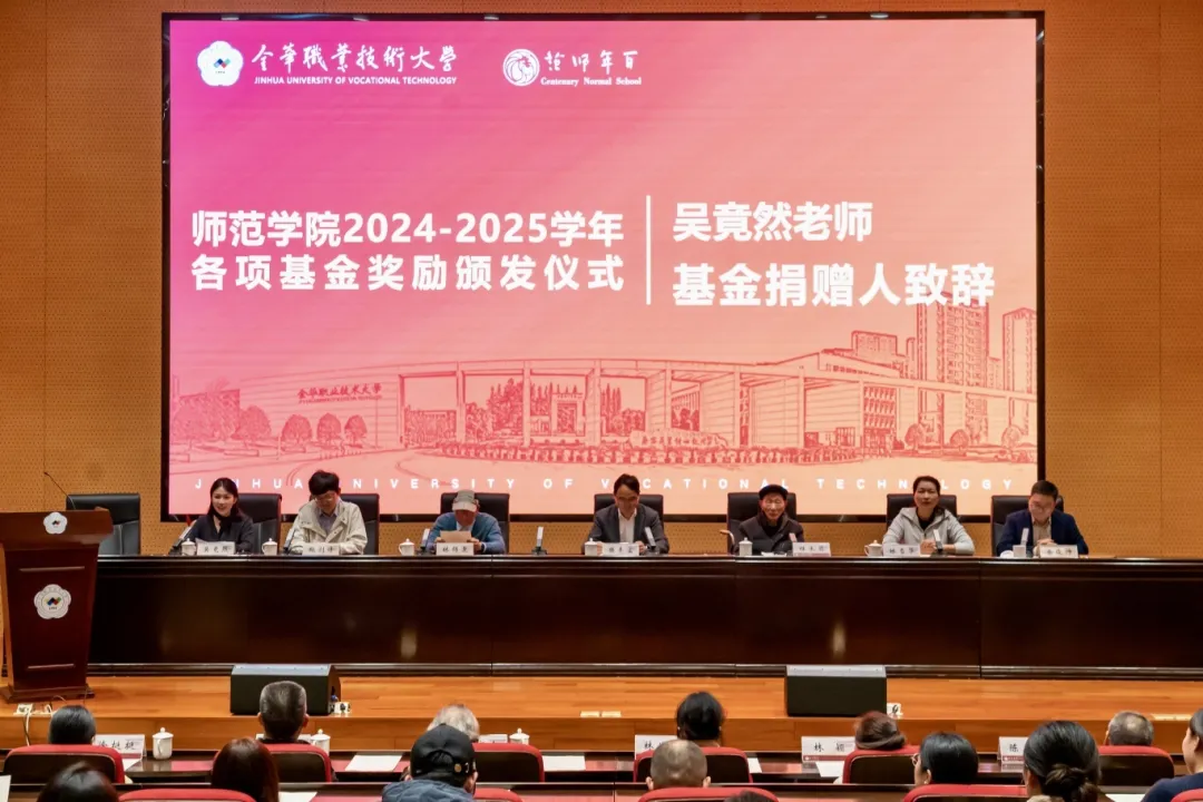 11月6日,金华市慈善总会与民建市直金职大支部联合成立的“民建星辰奖优基金”颁发仪式在金华职业技术大学明德报告厅内举行。学院领导班子成员、民建金职大支部主委吴竟然及支部教师出席仪式。