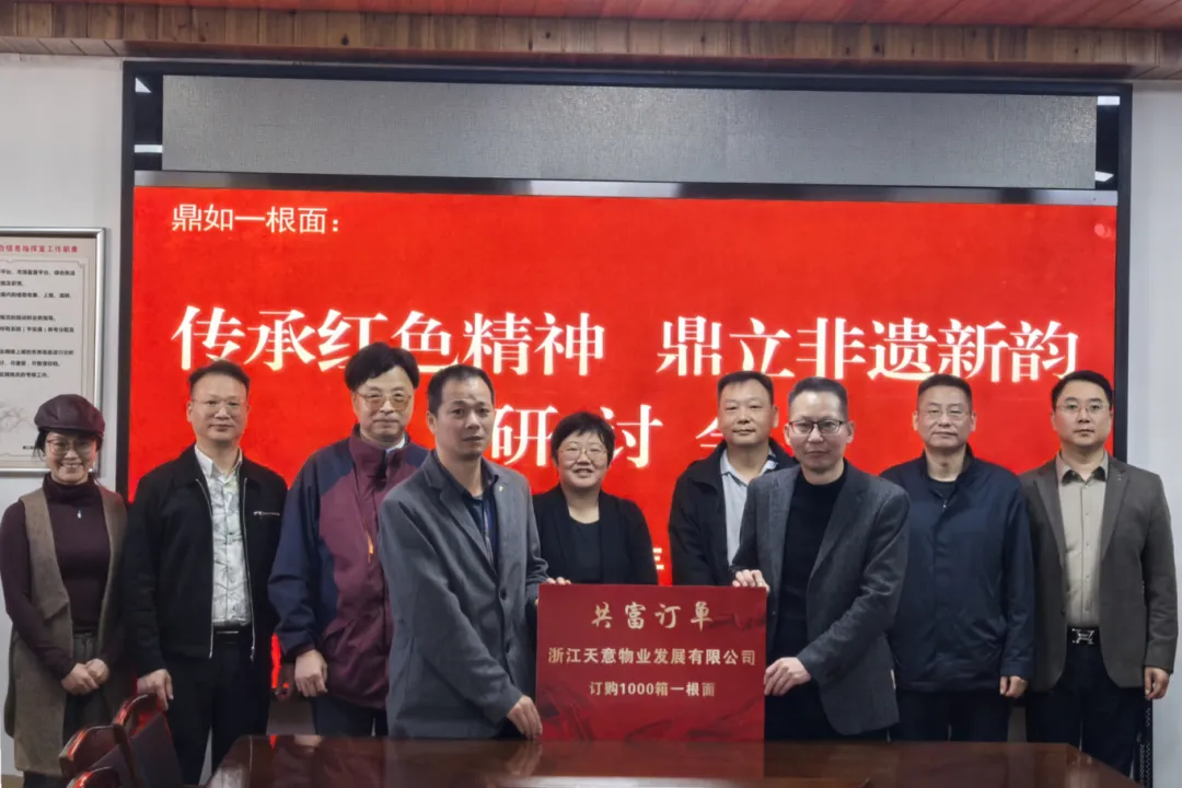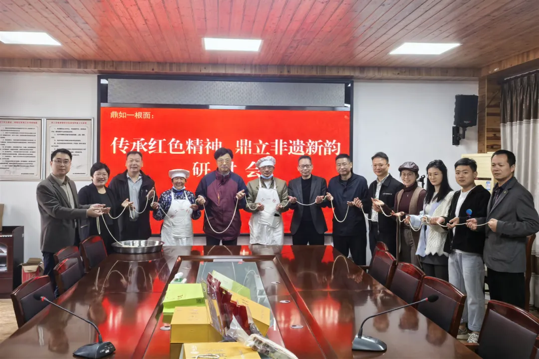 11月13日,为纪念抗战胜利80周年与民建成立80周年,传承民建先贤黄玠然(字鼎如)先生的革命精神,深度挖掘先贤故乡“一根面”非遗技艺的文化价值,“鼎如一根面:传承红色精神,鼎立非遗新韵”研讨会在檀溪镇举行。浦江县文广旅体局非物质文化遗产保护中心主任张轩虹,檀溪镇党委委员张志辽,黄玠然孙子黄翔,民建浙江省直四支部主委、民建浙江省参政议政科教文卫副主任黄炜,省直十一支部副主委叶军,民建金华市直浦江支部主委傅俪见、副主委张金天,省直四支部会员黄林祥等参加。研讨会由傅俪见主持。