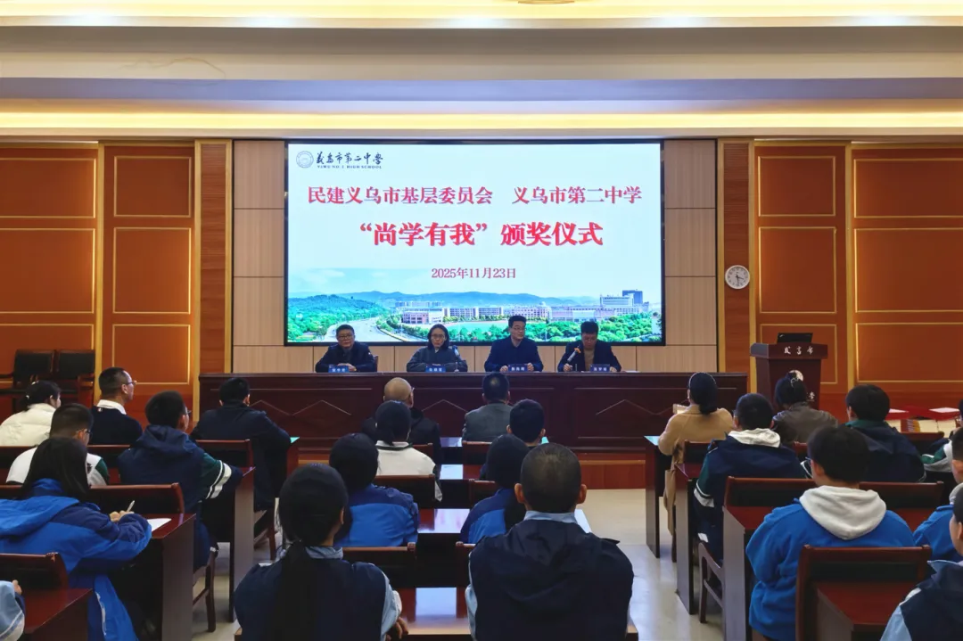 为践行服务社会初心、助力教育高质量发展,11月23日,民建义乌市基层委“尚学有我”项目第五次活动暨义乌二中第四期“尚学有我”助学活动在义乌二中报告厅顺利开展。民建义乌市基层委副主委朱晓棠、秘书长邹华忠,七支部主委张鑫林、八支部主委冯占钱及两个支部会员,与义乌二中校领导等共同出席活动。