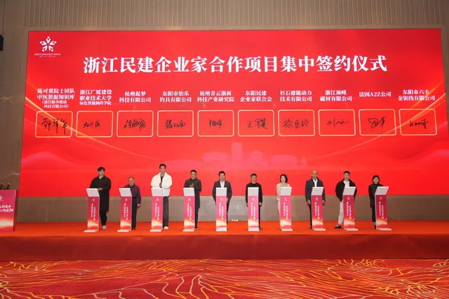 授牌之后,10家单位的合作项目集中签约更让现场氛围达到高潮。杭州青云浙商科技产业研究院与东阳民建企业家联合会、陈可冀院士团队与浙江广厦建设职业技术大学等合作,涵盖科技研发、生物医药、跨境电商等多个领域,实现了产业链上下游的精准对接,让“同心向东阳”的承诺落到实处。