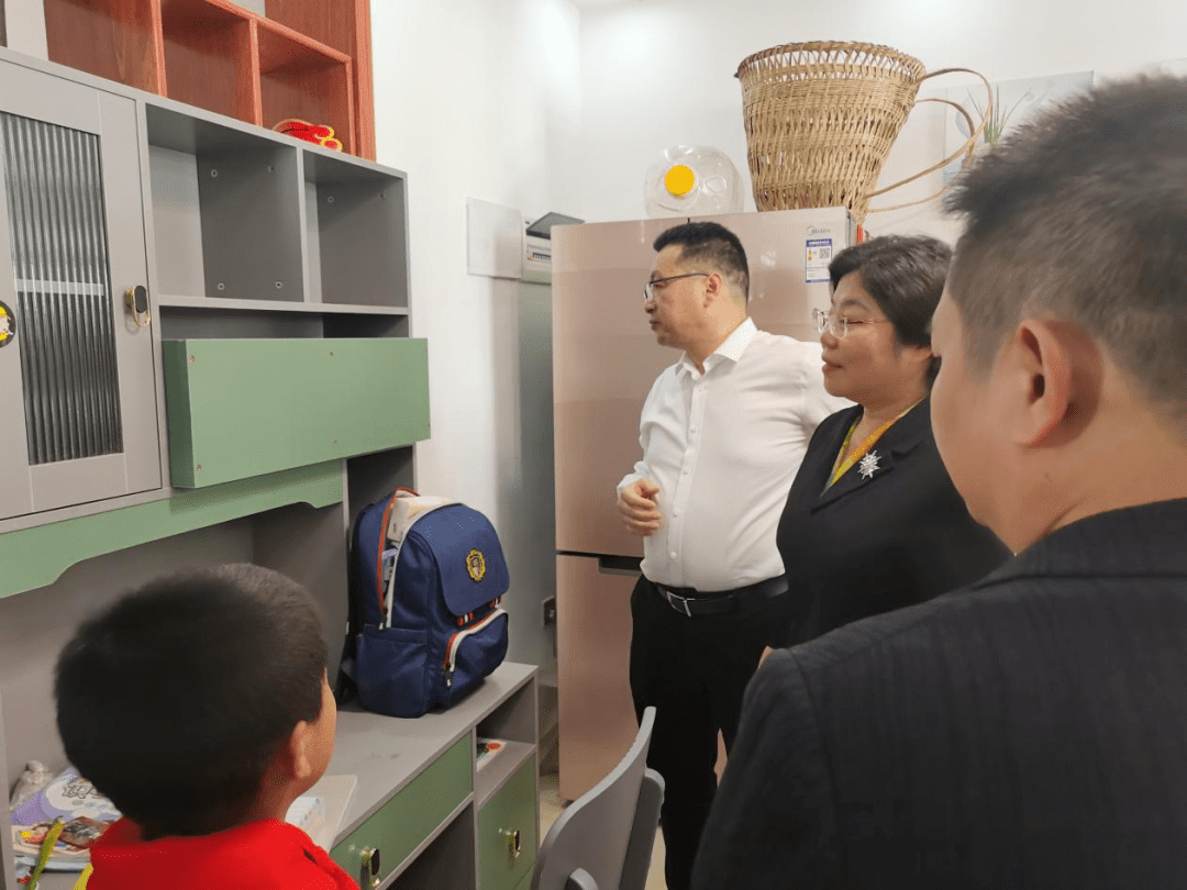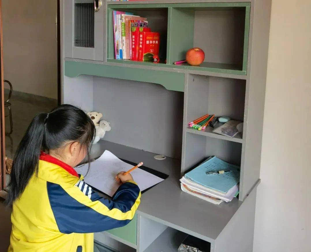捐赠仪式结束后,杨坚明、张晓艳一行前往受赠留守儿童代表家中走访,并现场送上书桌、台灯与学习用品。