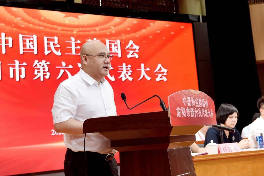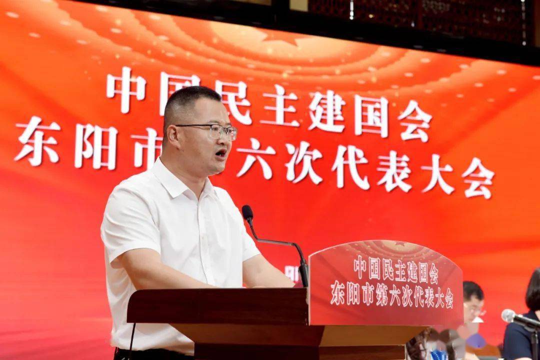 6月25日上午,中国民主建国会东阳市第六次代表大会在东阳市江滨文化中心胜利召开。金华市政协副主席、民建金华市委会主委杨坚明,中共东阳市委常委、常务副市长郭锦明,中共东阳市委常委、统战部部长张伟钢,东阳市政协副主席、民建金华市委会副主委陈琳,义乌市人大常委会副主任、民建义乌市基层委主委鲍建锋,东阳市政协副主席、民进东阳市基层委主委楼红霞,东阳市各民主党派、工商联、对口联系单位领导应邀出席大会。
