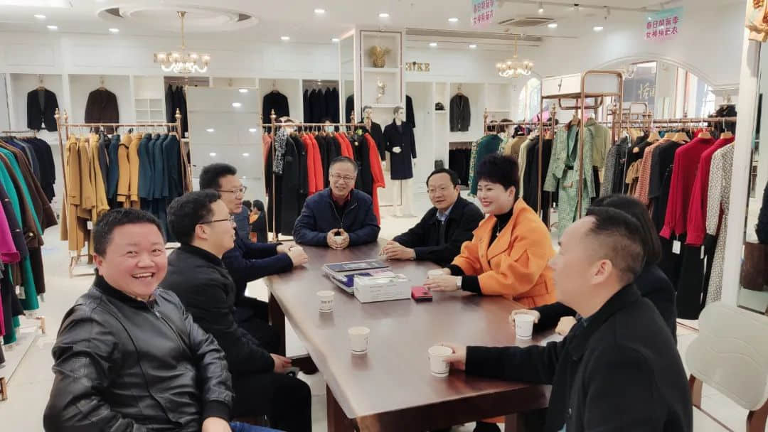 在会员企业浙江诗珂服饰有限公司,计勇强参观了品牌门店,了解公司服装产品、市场布局及发展战略,对诗珂公司积极开拓线上销售渠道的发展战略表示看好,并建议未来要更加注重线上与线下销售渠道的融会贯通,积极发挥电商扶贫直播带货价值,助推企业转型发展。