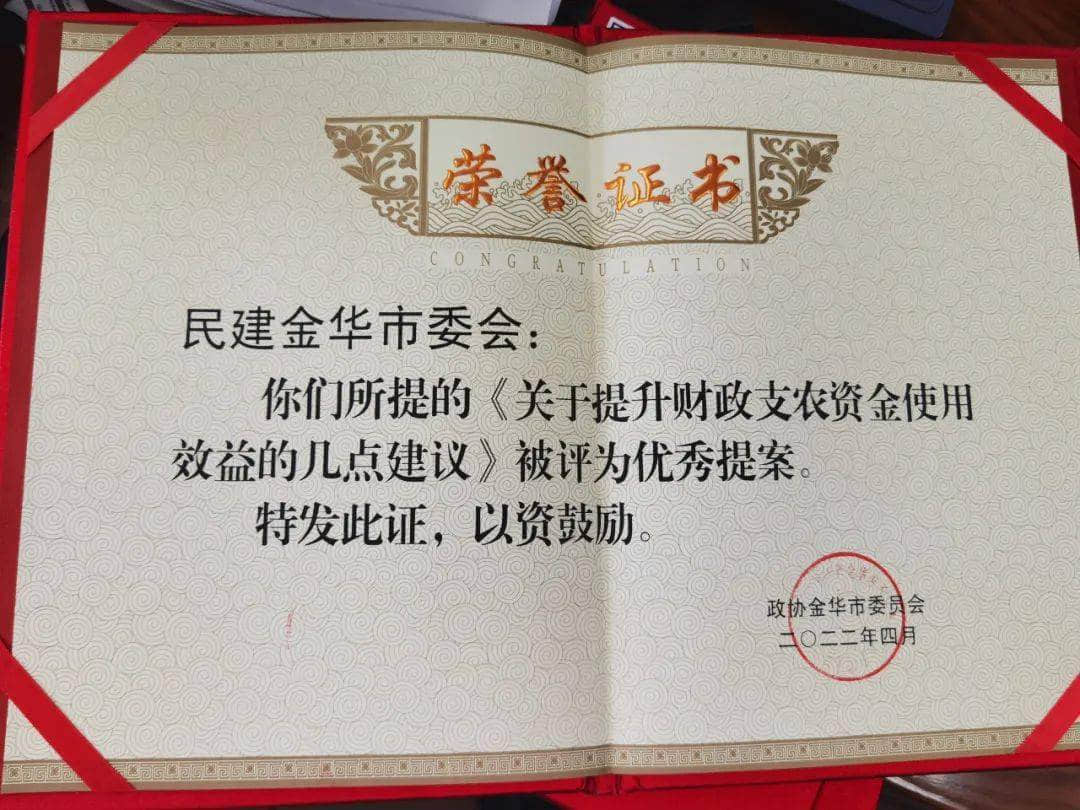 市委会团体提案《关于提升财政支农资金使用效益的几点建议》、卢森军个人提案《关于调整“马踏飞燕”形象标识位置的建议》、张洁心个人提案《关于加强制度保障,不断优化营商环境的建议》被评为市政协七届五次会议以来优秀提案。会议期间,朱慧刚、张锦林、郑梁梁、钟慧英、姜苏婕、姚方锐、徐永民、蒋经纬、谢灿等民建代表和委员接受电视台专访,所提建议提案,被金华市主流媒体客户端推送。