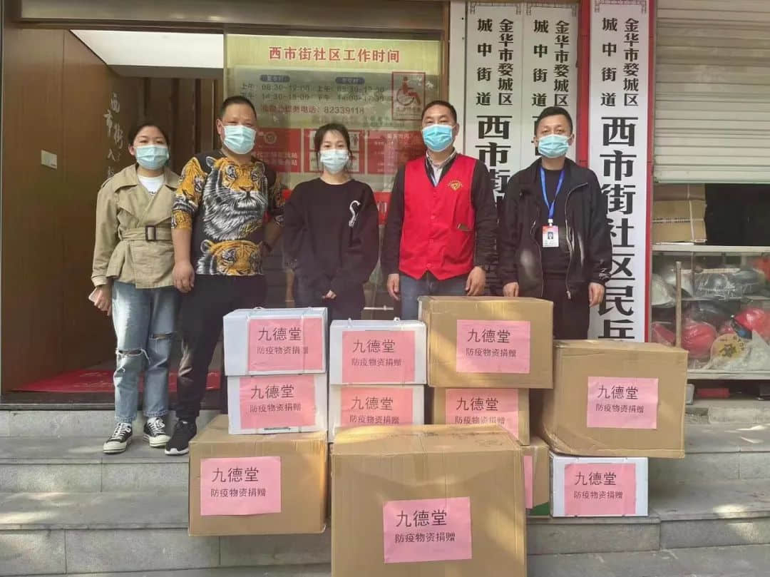 战胜疫情,防疫物资保障是关键。会员企业金华市九德堂医药连锁有限公司克服一切困难,实时跟进货运状况。民建会员、公司总经理张洁心亲自带领员工前往高速卡口转运防疫物资,保障防疫物资的供应和经营两不误。为助力街道社区抗疫,九德堂分别向城中街道、城西街道的一线防疫人员,捐赠了价值超过2万多元的防疫物资。