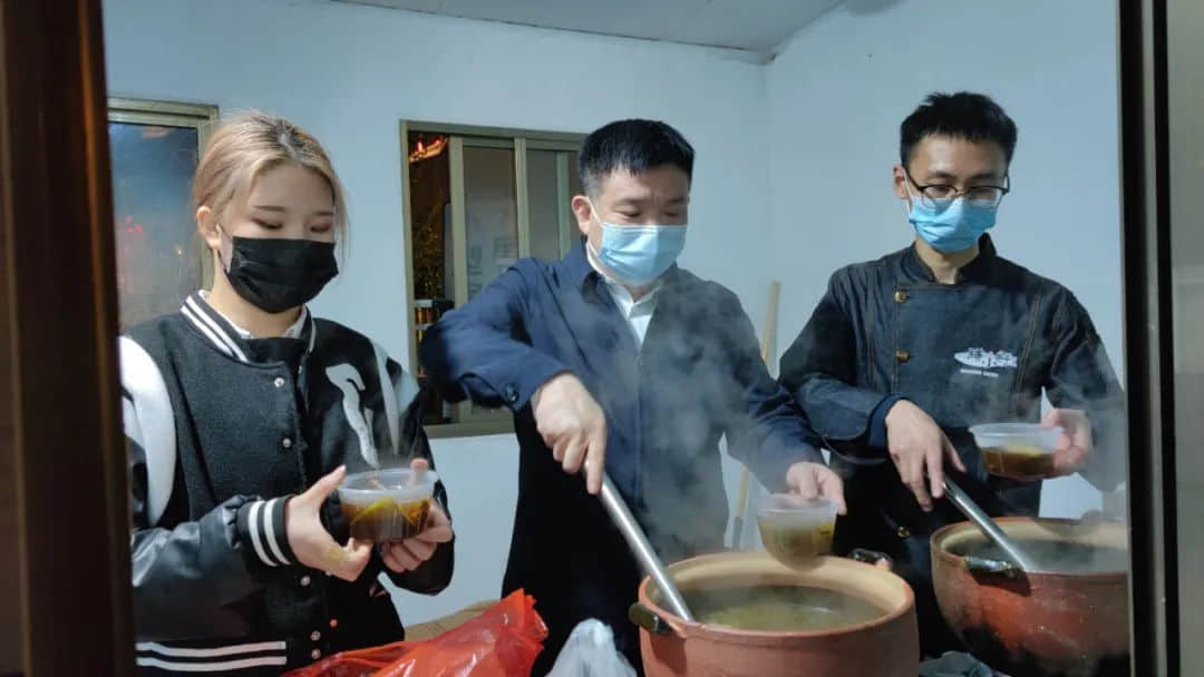 民建会员徐永民煲上暖心药汤,连续多天为东磐暖心服务点送上宵夜点心。
