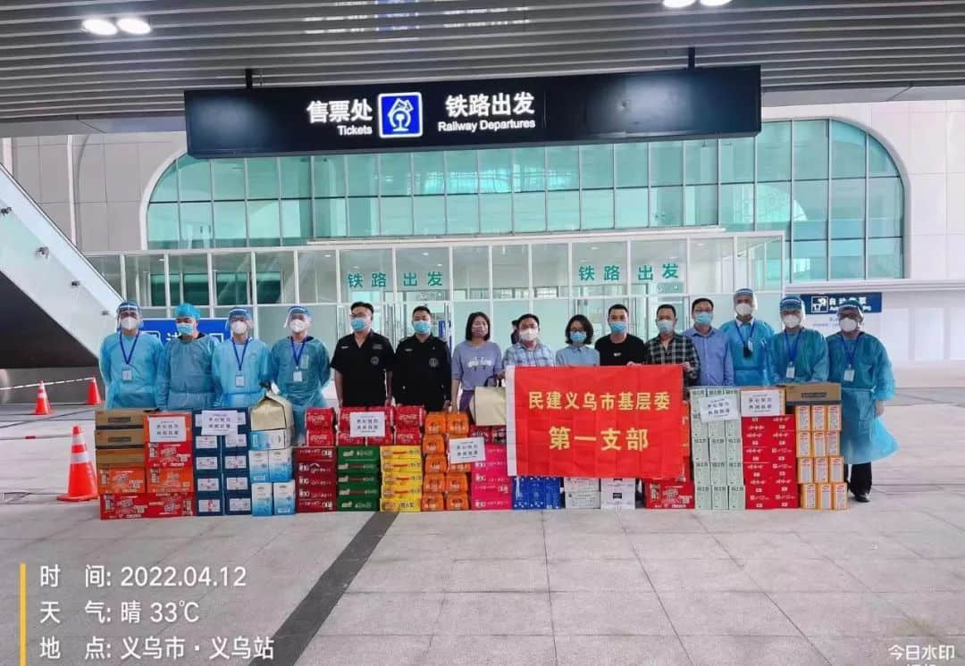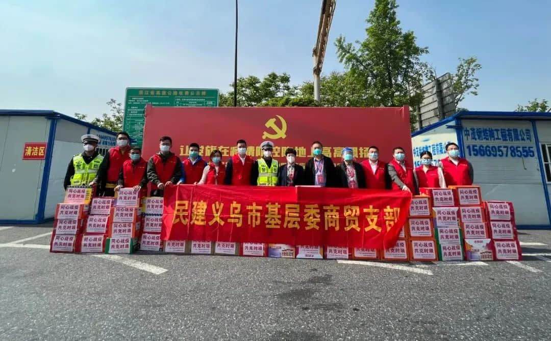 4月20日,民建义乌市基层委商贸支部在基层委副主委俞锋、委员吴雪峰、支部主委黄洪鸣的带领下,前往义乌徐村高速暖心服务点和江东街道抗疫指挥部慰问一线防疫工作人员。